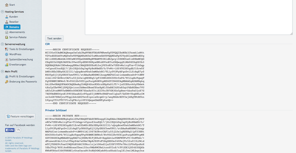 - Kopieren Sie die Angaben unter CSR und fügen diesen bei Ihrer Zertifizierungsstelle ein.