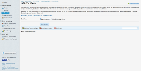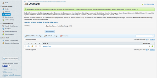 - Klicken Sie auf "SSL-Zertifikat hinzufügen"