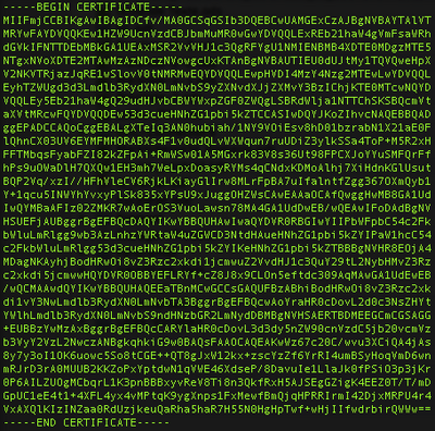 Neben dem im PEM/X509 Format gespeicherten BASE64 codierten Text Block gibt es noch das binäre DER/X509 Format. Diese Dateien werden häufig ebenfalls mit der Endung ".cer" beziehungsweise ".crt" gespeichert.