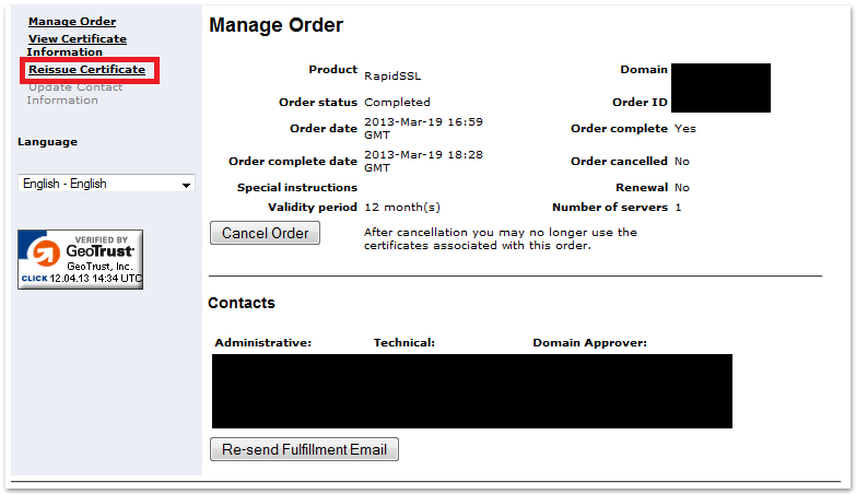 Neuausstellung (reissue) bei Zertifikaten von GeoTrust, Thawte, RapidSSL und Symantec