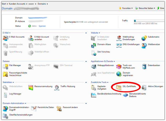 Einrichtung eines SSL-Zertifikates unter Plesk 9.x