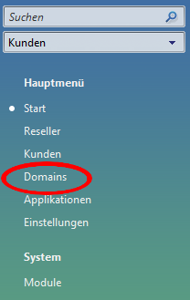 Öffnen Sie als Administrator das Domainmenü und wählen Sie die mit SSL zu sichernde Domain aus.