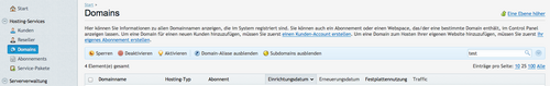 # Klicken Sie links in der Navigationsleiste auf "Domains".